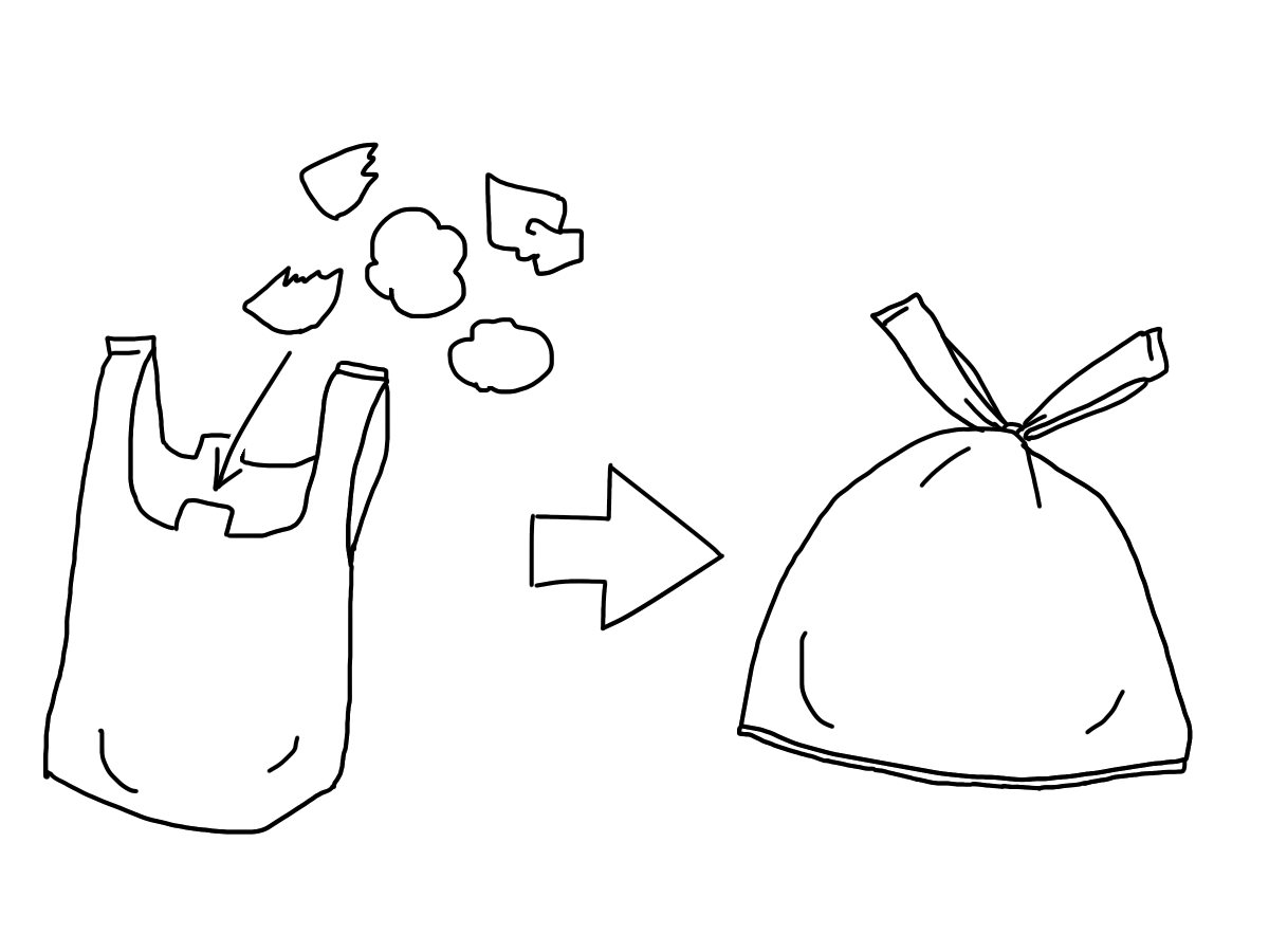 中が透けて見えない厚手の白いビニール袋なら、新聞紙やチラシなど白くないものでも良いと思います。とても簡単な作業なので、赤ちゃんにも出来る工程ですね。