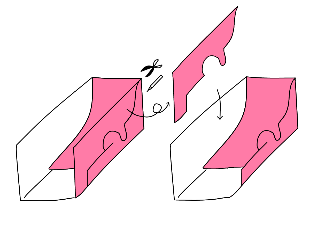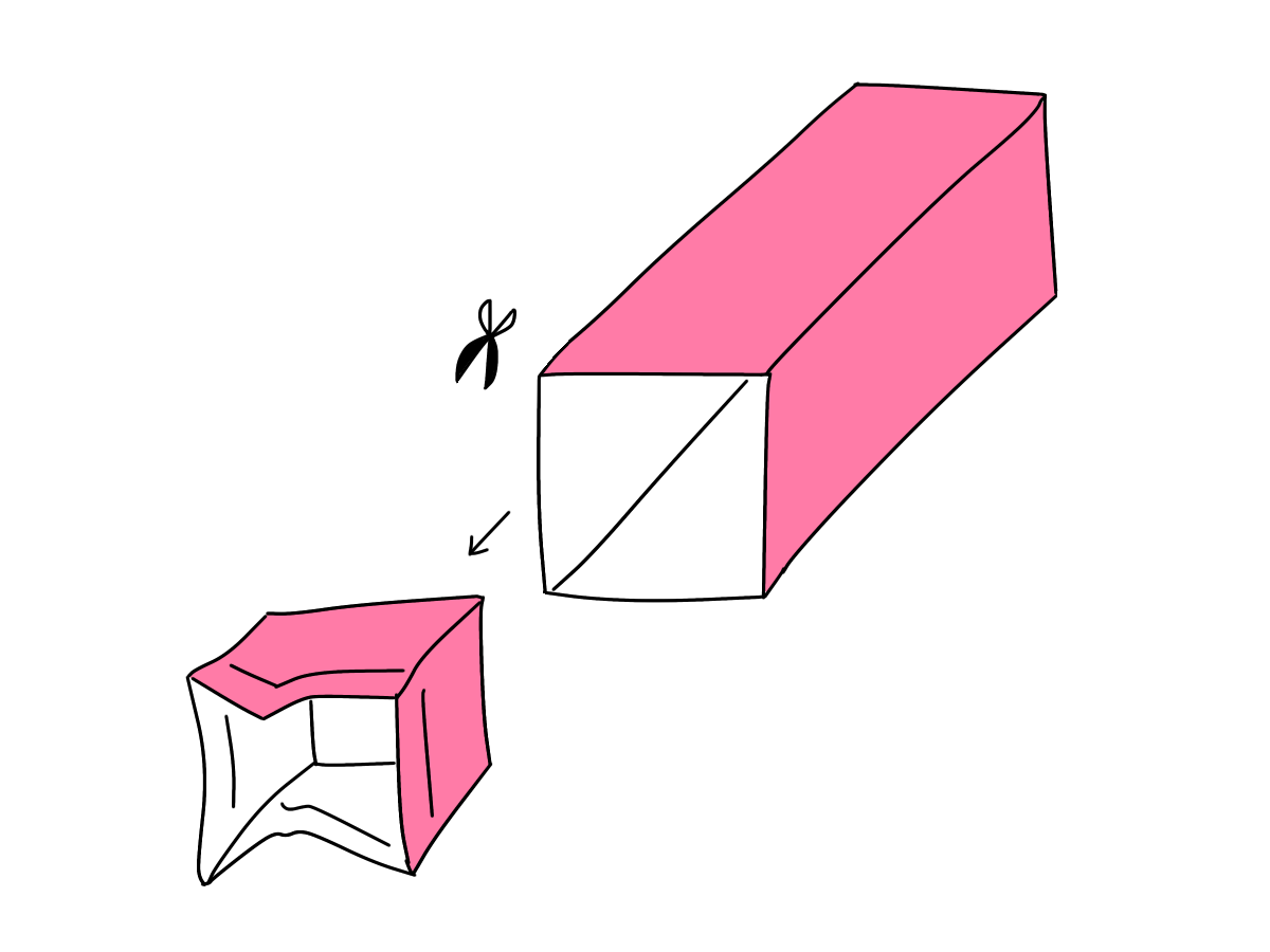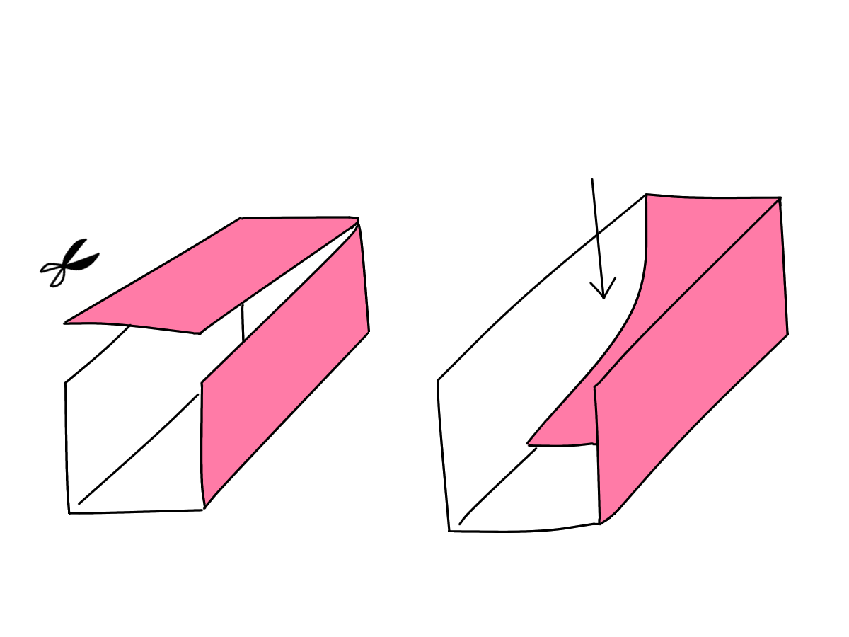 A底の部分を残して切り込みを入れ、中に押し込むようにしてシートを作ります。