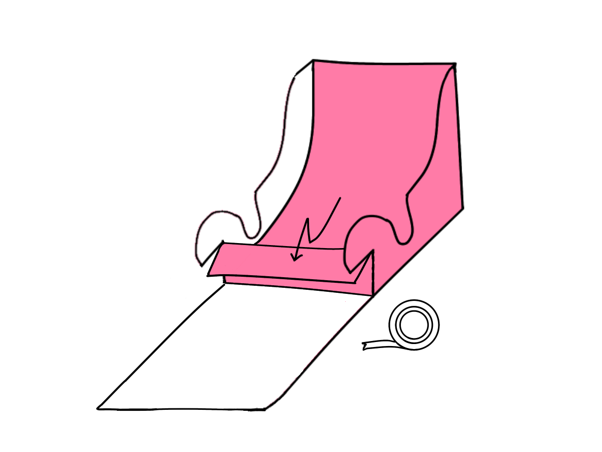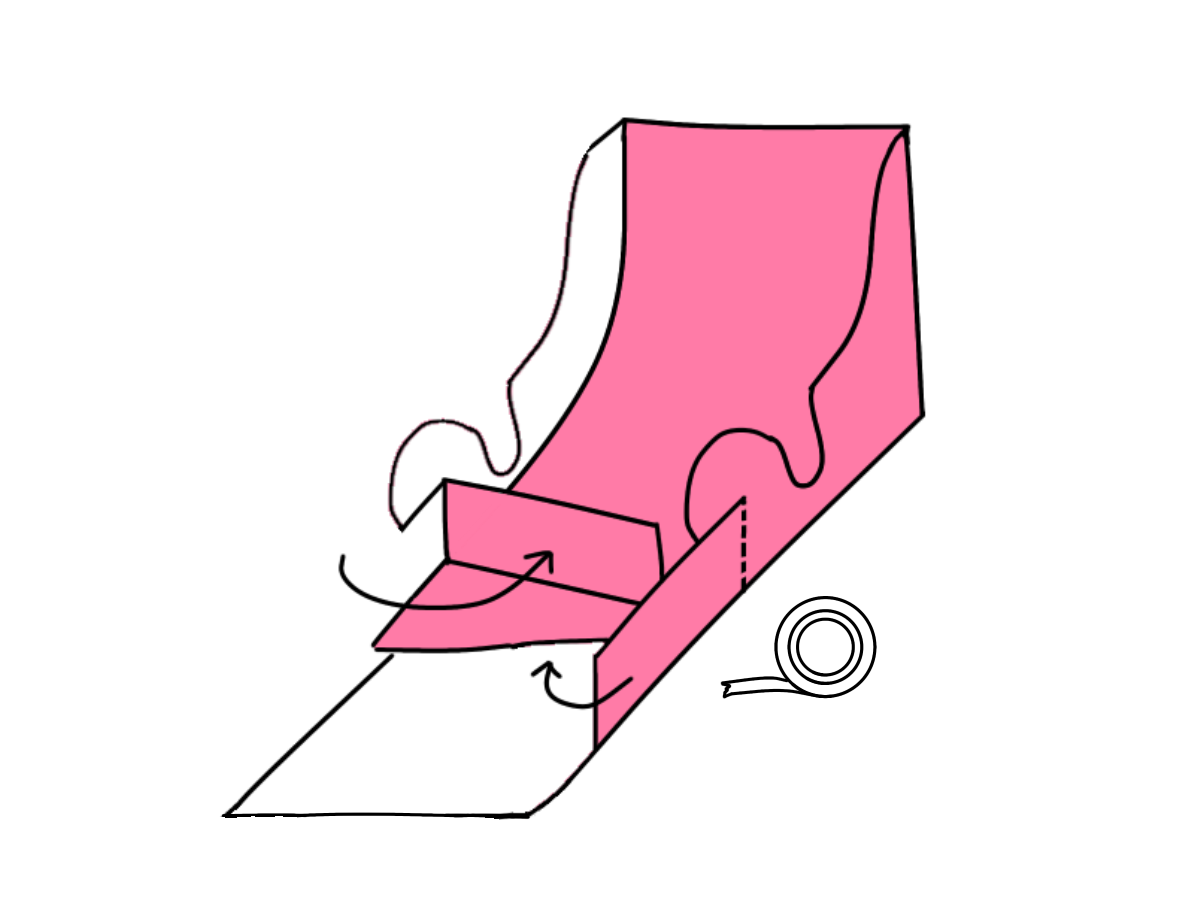 Dシートのはみ出した部分を前側に沿って折り、余りを切り落としてテープでとめます。